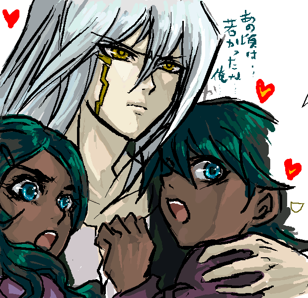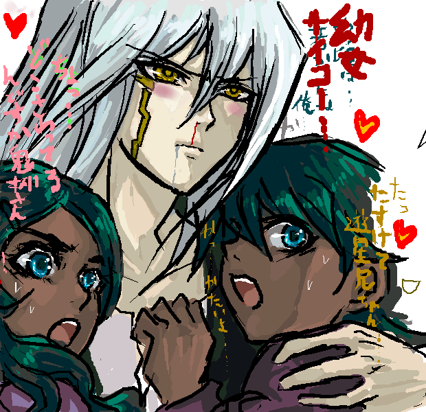 なんかハートちりばめたら二人の少年少女をはべらしてるみたいだったので…つい…^q^